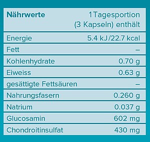 Glucosamin und Chondroitin sind natürliche Bestandteile des Bindegewebes, der Bänder und der Gelenkknorpel. Eine genügende Versorgung mit Glucosamin und Chondroitin kann dem Erhalt der Gelenkbeweglichkeit dienen.